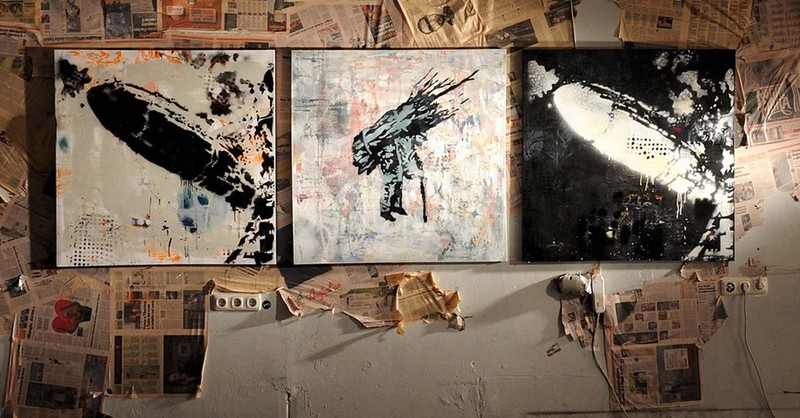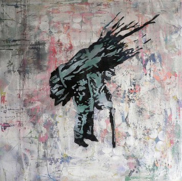 Aerosol-Stencils on Mixed Media Canvases